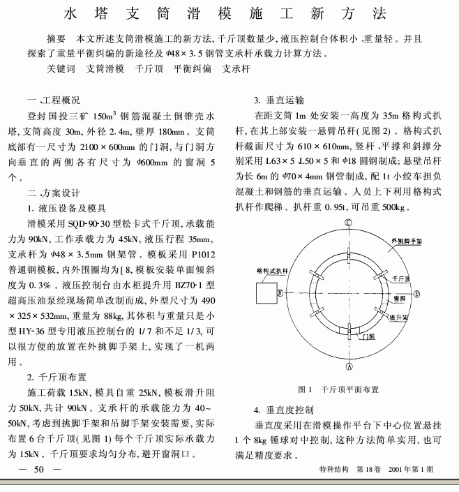 液压滑升式模板在倒锥壳水塔施工中的应用