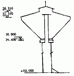 关键词 倒锥形水箱 高空吊模 吊索 拉杆 施工
