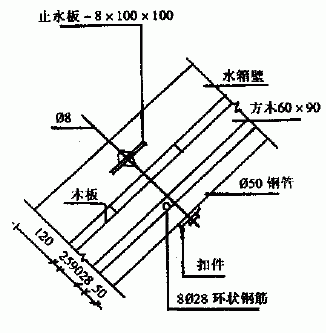 水箱在高空吊模,改预制为现浇,减少了高空作业,降低了成本,且符合设计要求。