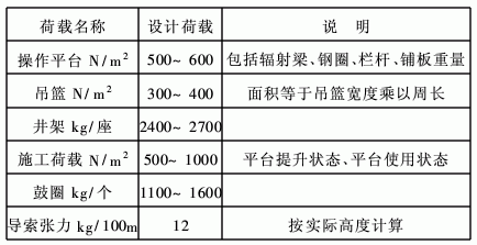 根据烟囱工程设计与施工的有关资料,结合烟囱倒模施工装置的设计实践经验,其设计荷载取值参照表1的有关数据,但由于实际构件和假定断面有出入,故在施工图设计时应按实际断面进行荷载复核。