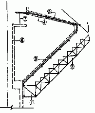 在支筒施工完后,将挂架和支筒顶的预埋件连结固定,然后将悬架和挂架连结,挂架外悬端用拉索和内井架相连,利用挂架作径向龙骨,再加上环向拉杆和支撑,就构成了一个锥形的施工操作平台。利用它来组装水箱底模,水箱底模承力构件和挂架类似,主要是径、环向2种构件。铺在径向构件上的模板是由钢板和加劲组成,它们的尺寸是按照标准化、系列化的原则设计(锥壳水箱在倾角固定后,不同容量水箱的底模,仅是沿径向增加一环圈),以便用种类最少的模具,施工品种最多的水塔,从而达到降低造价的目的。水箱的拆模、外装饰等,全是利用这个挂架平台。水箱上盖的底模和受力构件,如图3示,它一端支承在人井上,另一端支承在已完工