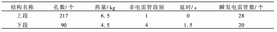 表1列出了两个切口布孔数、装药量、雷管段别和延迟时间。
